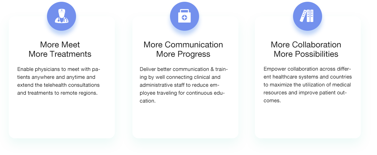 -When patients and their families want to contact physicians, they can conveniently join the meeting with doctors from any device, reducing communication barriers and promoting mutual understanding.