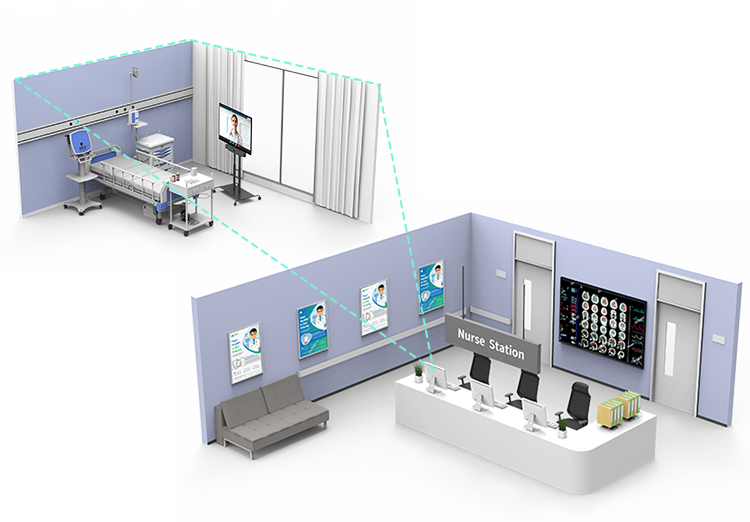 -Doctors can perform daily patient rounds remotely through A20 with auto answering, eliminating physical movement and improving patient care efficiency. And the TV connected to A20 can be used as a patient entertainment device during normal times.